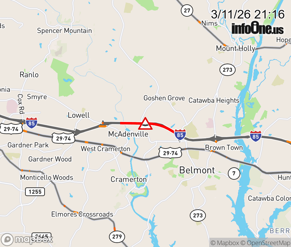 The right shoulder is closed before Exit 26 (Belmont Mt. Holly Rd) Updated: Wed 3/11/26 9:16 PM EDT ![]() Updated: Wed 3/11/26 9:16 PM EDT |