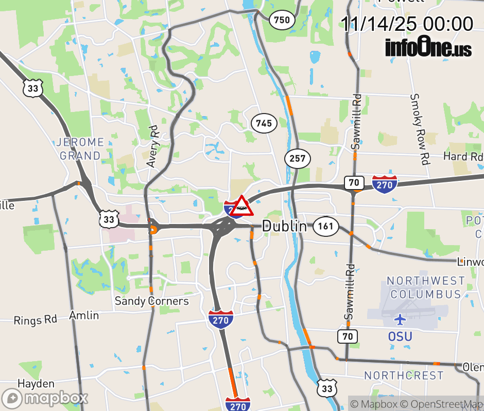 All lanes are closed on I-270 West at US-33/SR-161 West, due to a crash. ![]() |