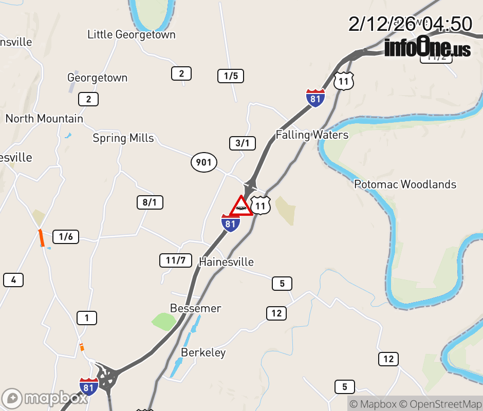Canceled 2/12/26 5:24 AM Location: I-81 at MM 20.0, WV Accident.
