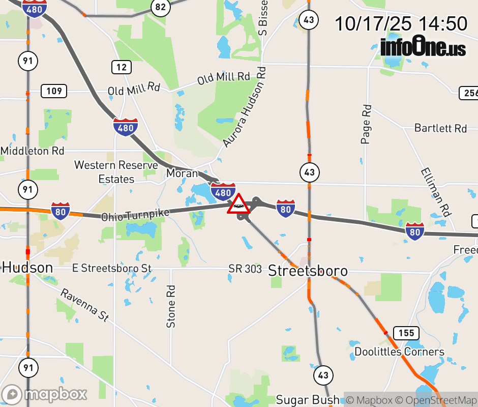 Expect lane closures on I-80 West (Ohio Turnpike) beyond I-480/SR-14, due to a crash. ![]() |