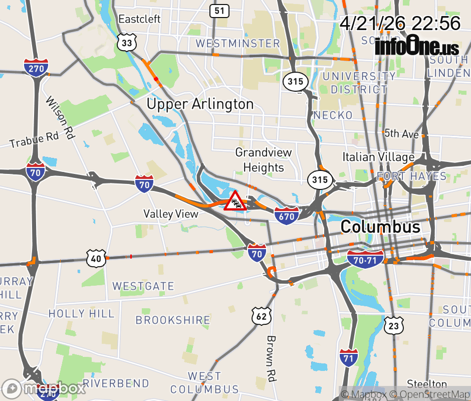 The 2 right lanes are blocked on I-670 West at US-33, due to repairs/maintenance. ![]() |
