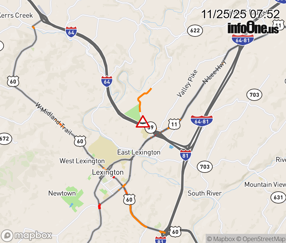 On VA-39 in the County of Rockbridge, in the vicinity of Alphin Ln; Gallery Ln; Rt. 750E/W (Rockbridge County), motorists can expect delays due to a vehicle crash. All east lanes are closed. ![]() |