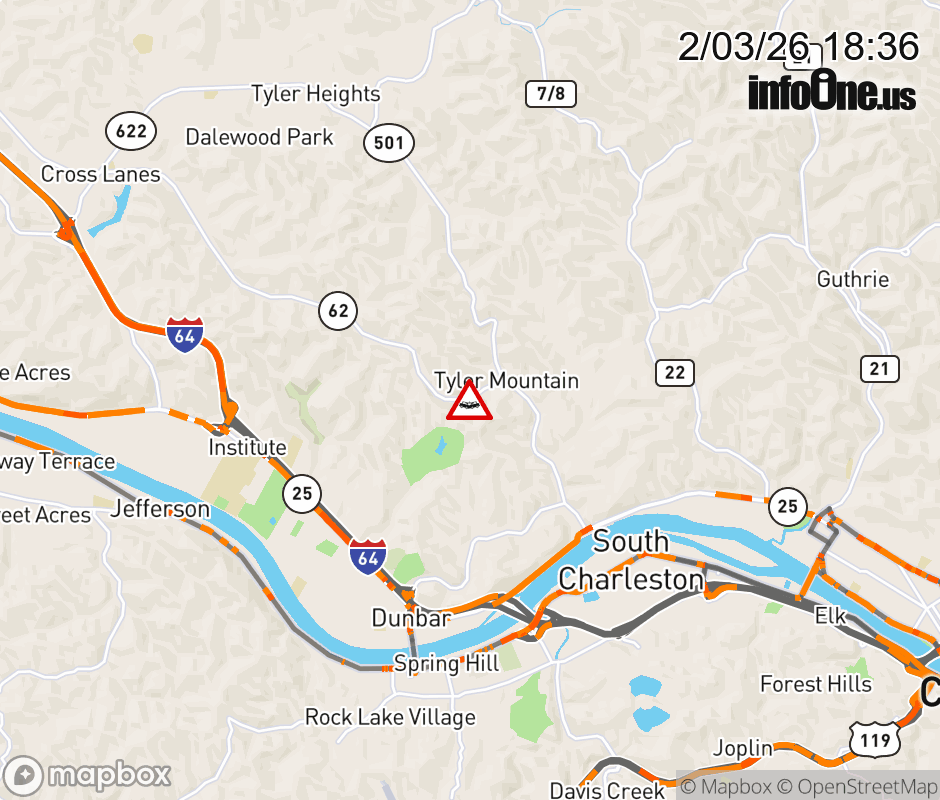 Vehicle Crash on WV-62 (Washington St W) & Mackinaw Dr in Tyler Mountain. ![]() |