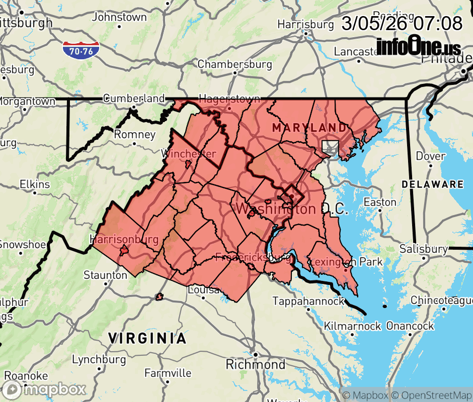 Canceled 3/5/26 7:37 AM Dense Fog Advisory issued March 5 at 7:07AM EST until March 5 at 10:00AM EST by NWS Baltimore MD/Washington DC * WHAT... Visibility one quarter mile or less in dense fog. * WHERE... Portions of DC, central, north central, northern, and southern Maryland, central, northern, northwest, and western Virginia, and panhandle West Virginia. * WHEN... Until 10 AM EST this morning. * IMPACTS... Low visibility could make driving conditions hazardous. ![]() |