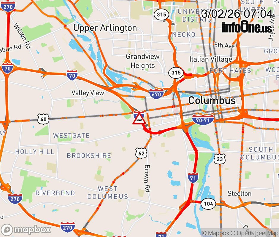 Expect lane closures on I-70 East beyond US-40/ W Broad St, due to a crash. ![]() |