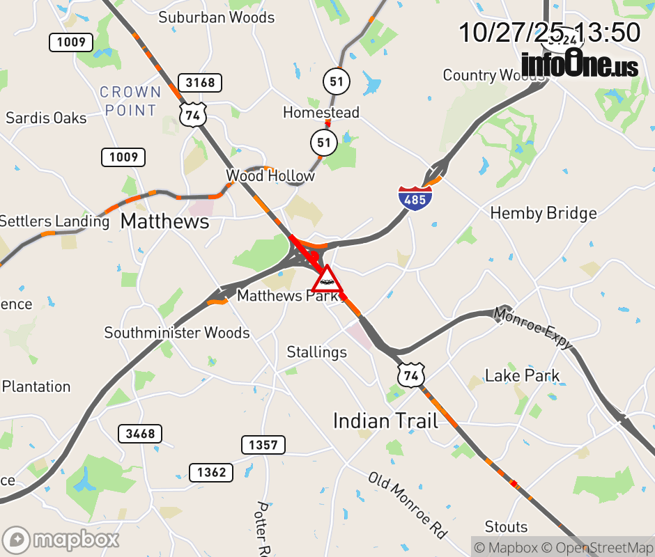 Two center lanes are closed at Exit 253 (I-485). ![]() |