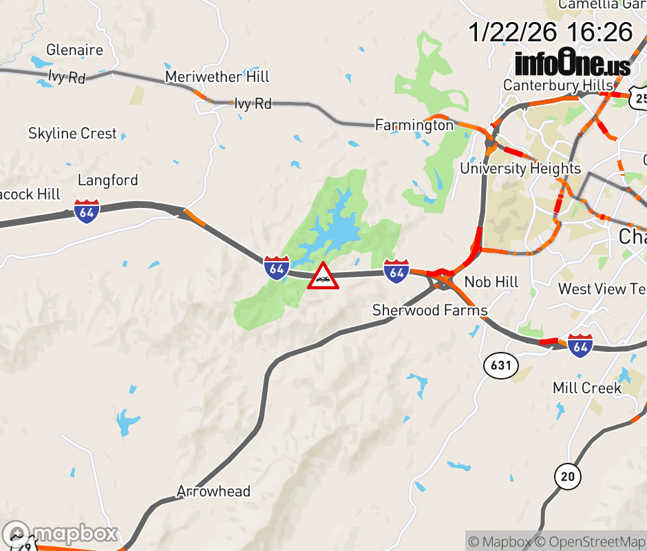 On I-64 West at mile marker 116.5 in the County of Albemarle, motorists can expect delays due to a disabled tractor trailer. Traffic backups are approximately 1.5 miles. Updated: Thu 1/22/26 4:26 PM EST ![]() Updated: Thu 1/22/26 4:26 PM EST |