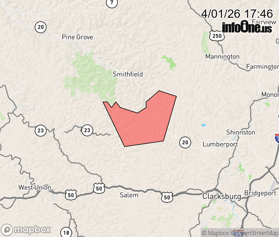 Canceled 4/1/26 5:55 PM Severe Thunderstorm Warning issued April 1 at 5:45PM EDT until April 1 at 6:00PM EDT by NWS Charleston WV At 544 PM EDT, a severe thunderstorm was located 8 miles north of Salem, or 12 miles southwest of Mannington, moving east at 30 mph. HAZARD...60 mph wind gusts and quarter size hail. SOURCE...Radar indicated. IMPACT...Hail damage to vehicles is expected. Expect wind damage to roofs, siding, and trees. Locations impacted include... Wallace. ![]() |