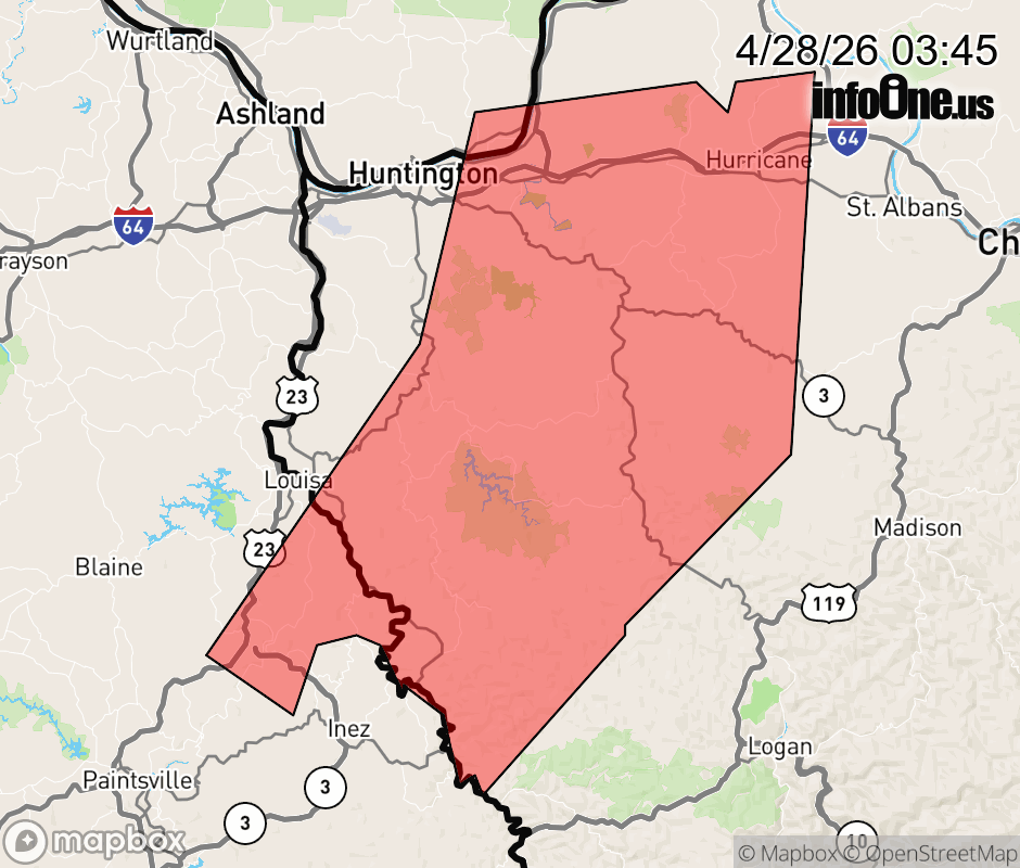 Canceled 4/28/26 4:00 AM Special Weather Statement issued April 28 at 3:44AM EDT by NWS Charleston WV At 343 AM EDT, Doppler radar was tracking strong thunderstorms along a line extending from near Barboursville to near East Lynn Lake to near Ulysses. Movement was east at 50 mph. HAZARD...Wind gusts up to 40 mph. SOURCE...Radar indicated. IMPACT...Gusty winds could knock down tree limbs and blow around unsecured objects. Locations impacted include... Huntington, Wayne, Hamlin, Proctorville, Beech Fork State Park, Hurricane, Barboursville, Milton, Ranger, Ona, Culloden, Spurlockville, Harts, Gill, Ulysses, East Lynn Lake, Kiahsville, Dunlow, Hode, and Teays Valley. This includes Interstate 64 in West Virginia between mile markers 11 and 37. ![]() |