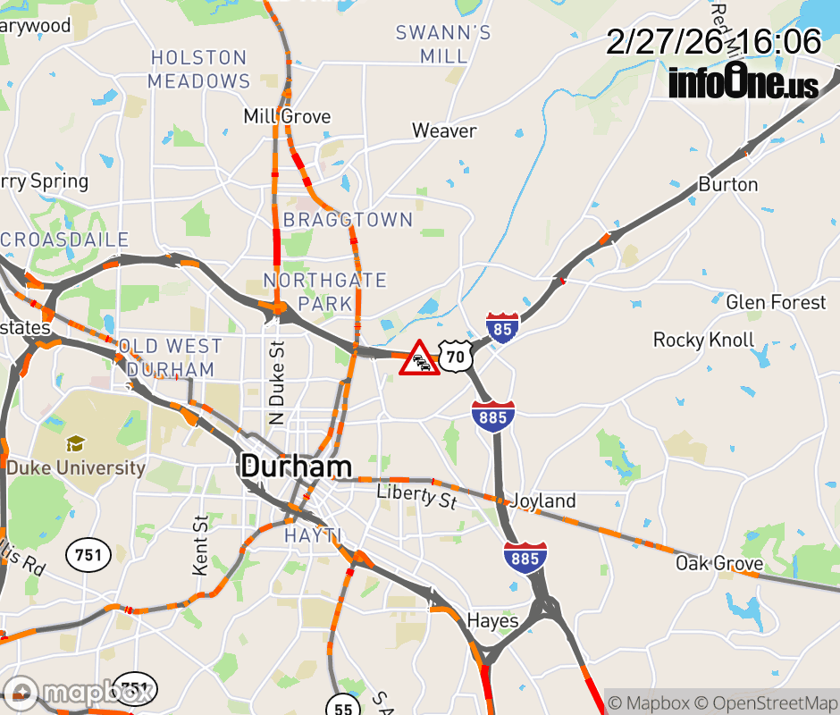 The two right lanes are closed after Exit 177 (NC 55) for emergency pothole repair. Updated: Fri 2/27/26 4:06 PM EST ![]() Updated: Fri 2/27/26 4:06 PM EST |