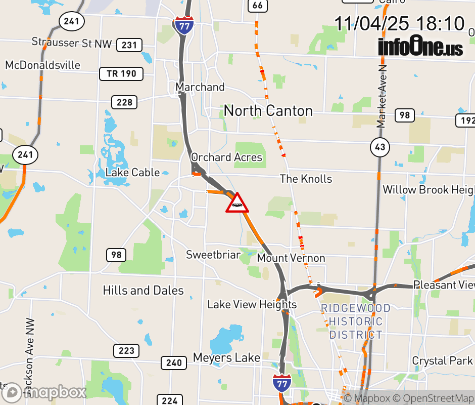 The left lane is blocked on I-77 North at Belden Village St/Whipple Ave, due to a crash. ![]() |