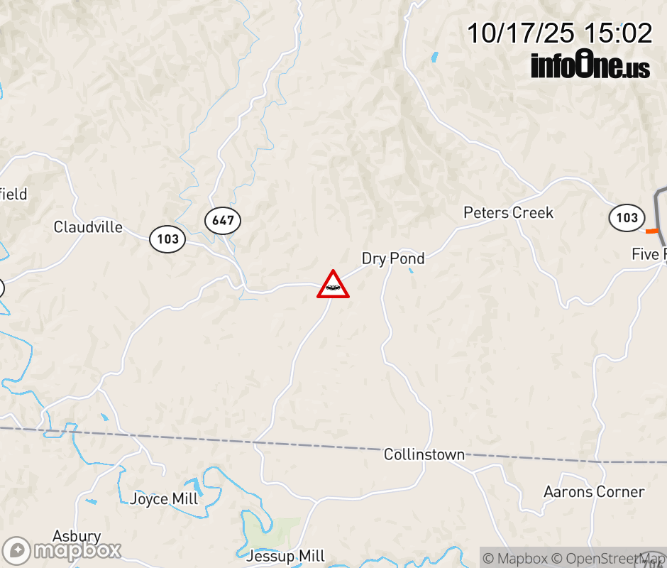 On VA-103 in the County of Patrick, in the vicinity of Elastic Plant Rd; Rt. 663N/S (Patrick County), motorists can expect delays due to a vehicle crash. All east lanes are closed. All west lanes are closed. Updated: Fri 10/17/25 3:02 PM EDT ![]() Updated: Fri 10/17/25 3:02 PM EDT |