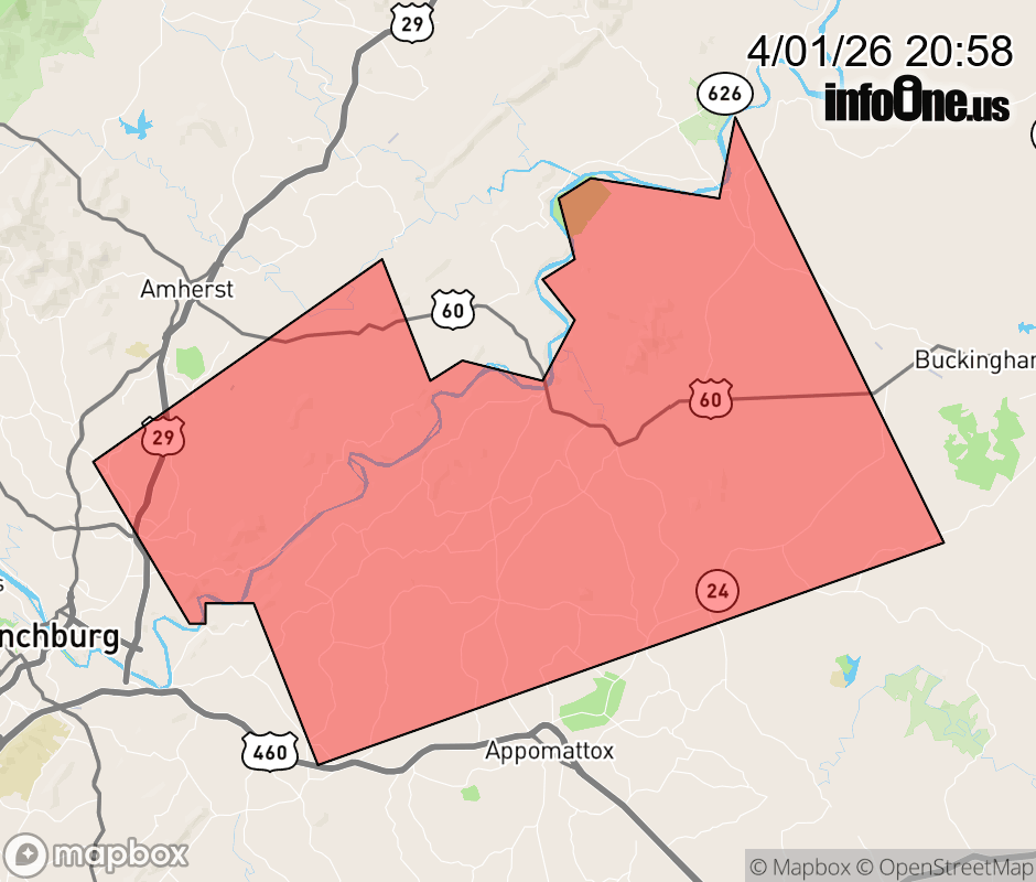 Canceled 4/1/26 9:30 PM Special Weather Statement issued April 1 at 8:57PM EDT by NWS Blacksburg VA At 856 PM EDT, Doppler radar was tracking a strong thunderstorm near Stonewall, or 7 miles north of Concord, moving east at 35 mph. HAZARD...Wind gusts up to 40 mph and penny size hail. SOURCE...Radar indicated. IMPACT...Gusty winds could knock down tree limbs and blow around unsecured objects. Minor hail damage to vegetation is possible. Locations impacted include... Bent Creek... Toga... Riverville... Stonewall... Wingina... Oakville... and Tower Hill. ![]() |