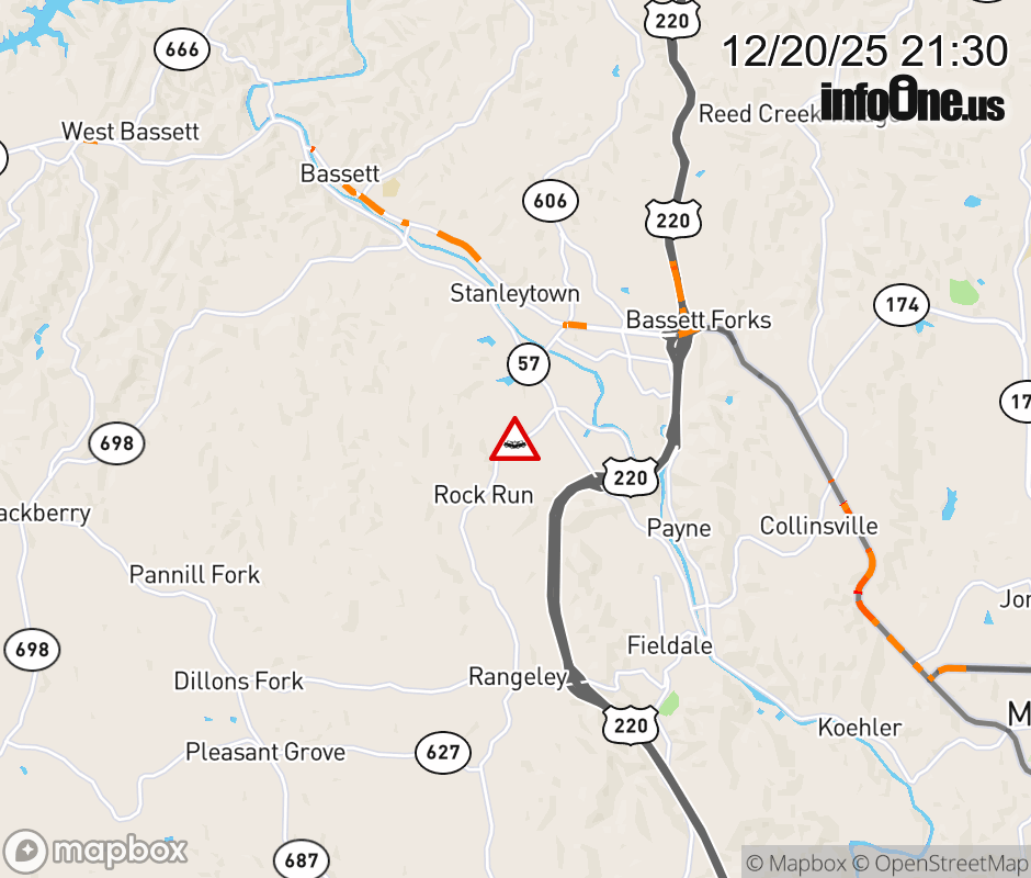 On Rt. 683 North in the County of Henry, in the vicinity of River Rd; Riverside Dr; ALT VA-57E/W, motorists can expect delays due to a vehicle crash. Lane closures exist. ![]() |