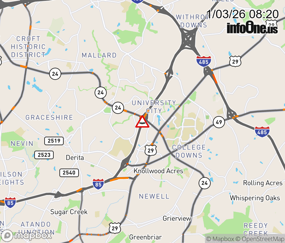 The left shoulder is closed at Exit 45 (NC 24). Updated: Sat 1/3/26 8:20 AM EST ![]() Updated: Sat 1/3/26 8:20 AM EST |