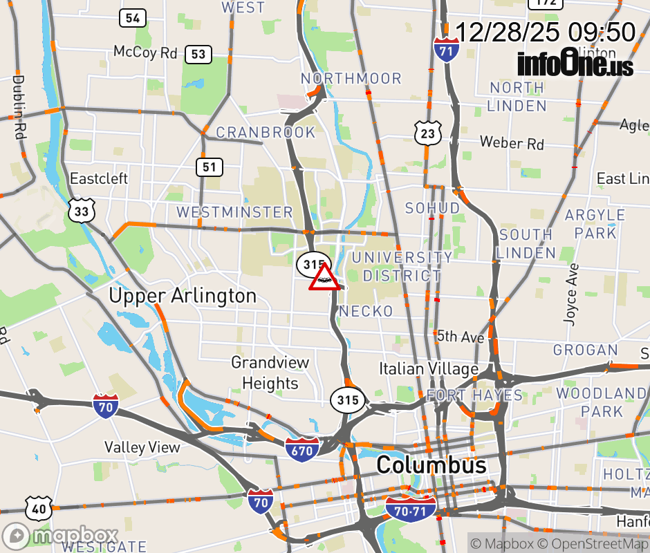 The right lane is blocked on SR-315 South at Kinnear Rd/Olentangy Rd, due to a crash. ![]() |