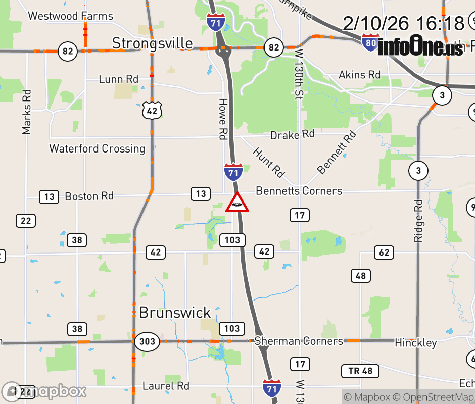 Expect lane closures on I-71 South beyond SR-82/Royalton Rd, due to a crash. ![]() |