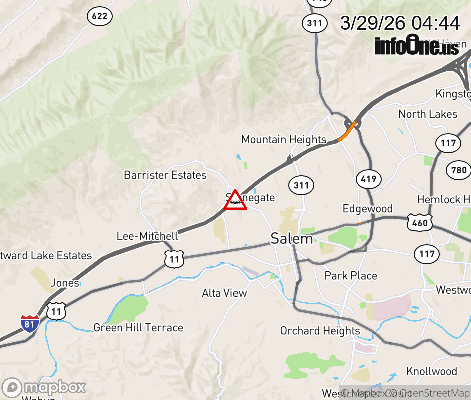 On I-81 at mile marker 138.8 in the County of Roanoke, motorists can expect delays due to a vehicle crash. The south right shoulder is closed. ![]() |