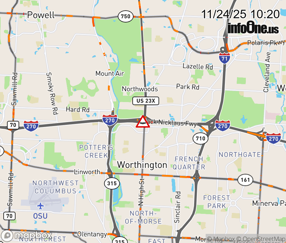 All lanes are blocked on I-270 East beyond US-23, due to a crash. ![]() |