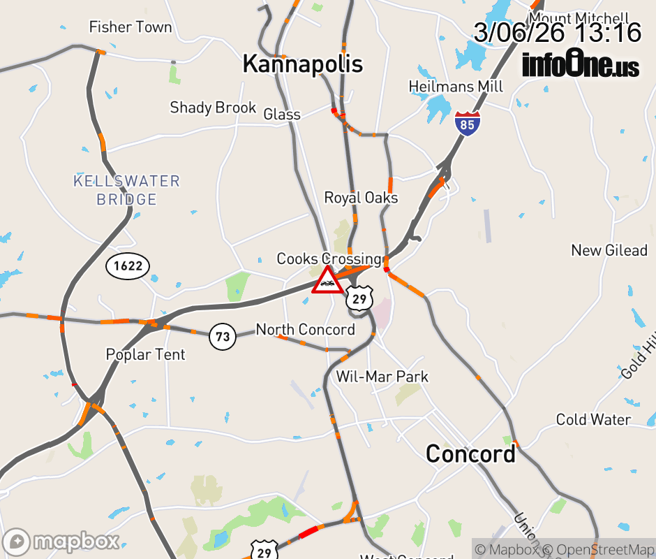 The two left lanes are closed prior two Exit 58 (Concord Pkwy). ![]() |