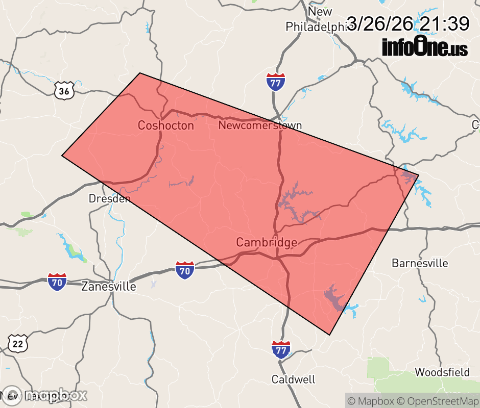 Canceled 3/26/26 9:48 PM Severe Thunderstorm Warning issued March 26 at 9:38PM EDT until March 26 at 10:30PM EDT by NWS Pittsburgh PA SVRPBZ The National Weather Service in Pittsburgh has issued a * Severe Thunderstorm Warning for... Western Belmont County in east central Ohio... Southern Coshocton County in east central Ohio... Guernsey County in east central Ohio... Southwestern Harrison County in east central Ohio... Northeastern Muskingum County in east central Ohio... North Central Noble County in east central Ohio... South Central Tuscarawas County in east central Ohio... * Until 1030 PM EDT. * At 938 PM EDT, a severe thunderstorm with a history of producing large hail was located over Coshocton, moving southeast at 50 mph. HAZARD...60 mph wind gusts and half dollar size hail. SOURCE...Radar indicated. IMPACT...Hail damage to vehicles is expected. Expect wind damage to roofs, siding, and trees. * Locations impacted include... Coshocton, Cambridge, Newcomerstown, New Concord, Byesville, West Lafayette, Antrim, Senecaville, Pleasant City, Conesville, Lore City, Old Washington, Plainfield, Salesville, Otsego, Boden, Birmingham, Cooperdale, Seneca Lake Park and Kimbolton. ![]() |