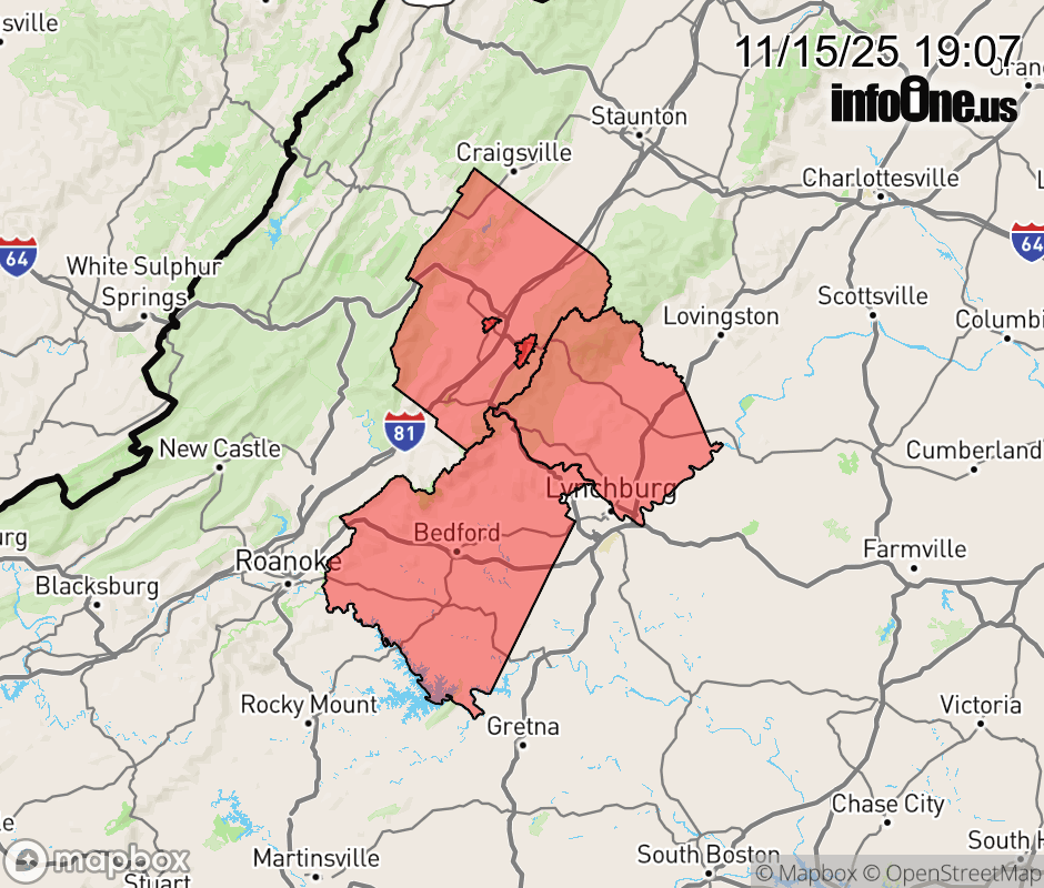 Canceled 11/16/25 3:32 AM Wind Advisory issued November 15 at 7:04PM EST until November 16 at 12:00PM EST by NWS Blacksburg VA * WHAT... West winds 15 to 25 mph with gusts up to 50 mph expected. * WHERE... Amherst, Bedford, and Rockbridge counties. * WHEN... From midnight tonight to noon EST Sunday. * IMPACTS... Gusty winds will blow around unsecured objects. Tree limbs could be blown down and a few power outages may result. ![]() |