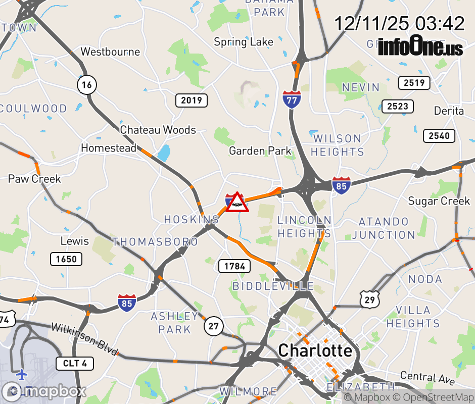 The two left lanes are closed near Exit 37 (Beatties Ford Road). Updated: Thu 12/11/25 3:42 AM EST ![]() Updated: Thu 12/11/25 3:42 AM EST |