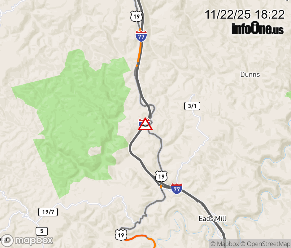 Canceled 11/22/25 7:26 PM Location: I-77 at MM 22.0, WV Accident.
