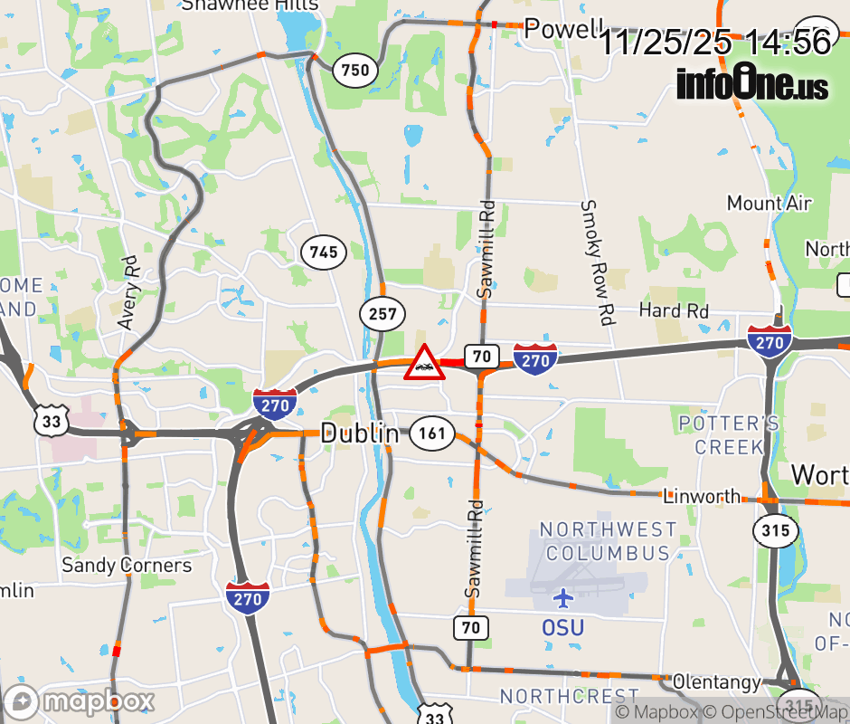 The right shoulder is blocked on I-270 West beyond Sawmill Rd, due to a disabled vehicle. Updated: Tue 11/25/25 2:56 PM EST ![]() Updated: Tue 11/25/25 2:56 PM EST |