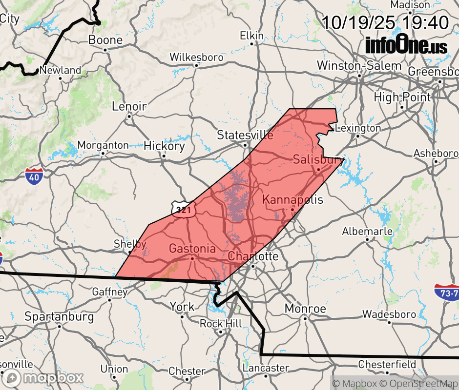 Canceled 10/19/25 8:15 PM Special Weather Statement issued October 19 at 7:38PM EDT by NWS Greenville-Spartanburg SC At 736 PM EDT, Doppler radar was tracking gusty showers along a line extending from 7 miles southwest of Mocksville to 8 miles east of Lincolnton to 7 miles northeast of Gaffney. Movement was east at 30 mph. HAZARD...Wind gusts up to 40 mph. SOURCE...Radar indicated. IMPACT...Gusty winds could knock down tree limbs and blow around unsecured objects. Locations impacted include... Gastonia, Huntersville, Kannapolis, Salisbury, Lincolnton, Mocksville, Shelby, Statesville, Northeast Charlotte, and Northwest Charlotte. ![]() |