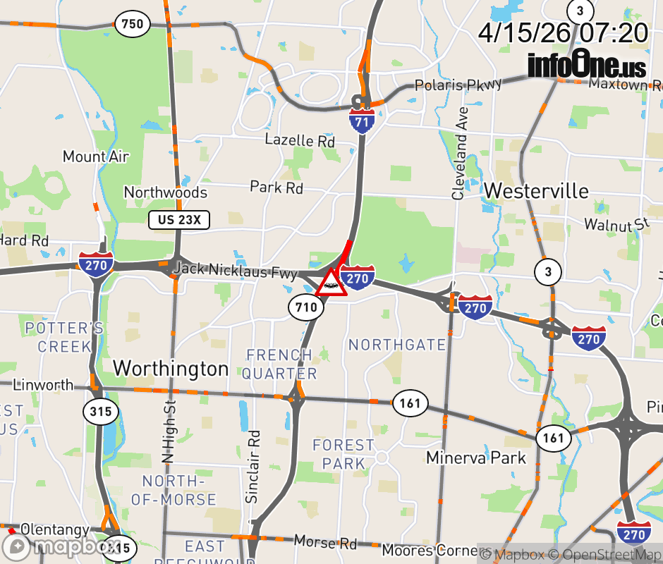 Ramp I-71 South to I-270 East CLOSED because of a crash.