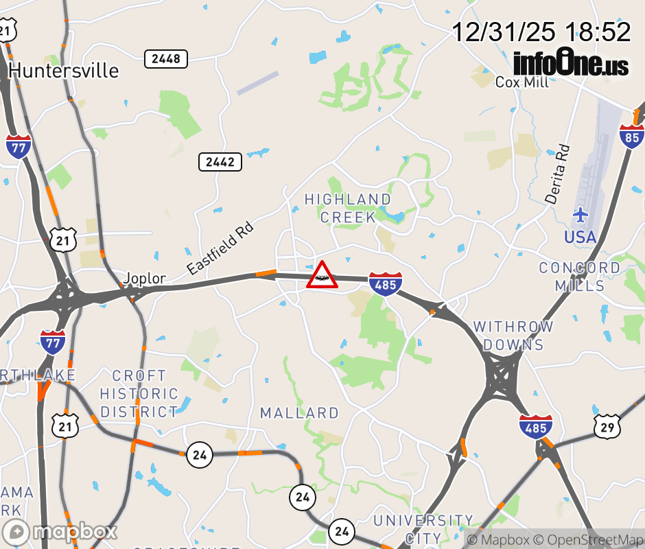 The Exit 26 (Prosperity Church Rd) ramp is closed. ![]() |