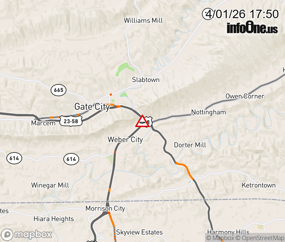 On US-23 North in the County of Scott, in the vicinity of Wadlow Gap Hwy; US-421E, US-58E; US-421E/W, US-58E/W, motorists can expect delays due to a vehicle crash. Lane closures exist. ![]() |