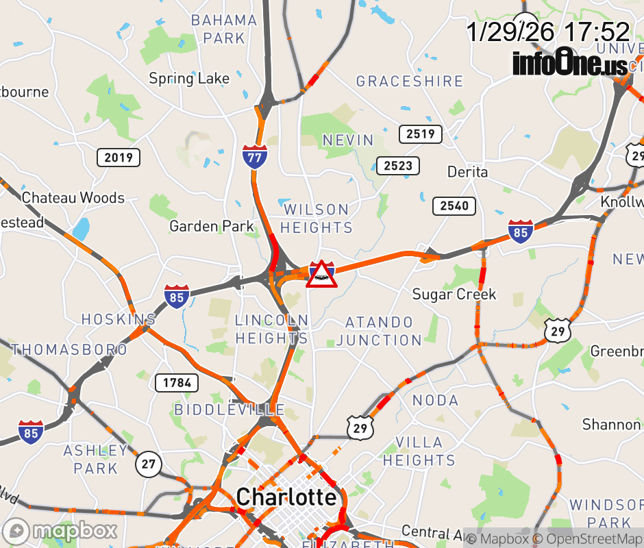 The left lane is closed before Exit 38 (I-77) Updated: Thu 1/29/26 5:52 PM EST ![]() Updated: Thu 1/29/26 5:52 PM EST |