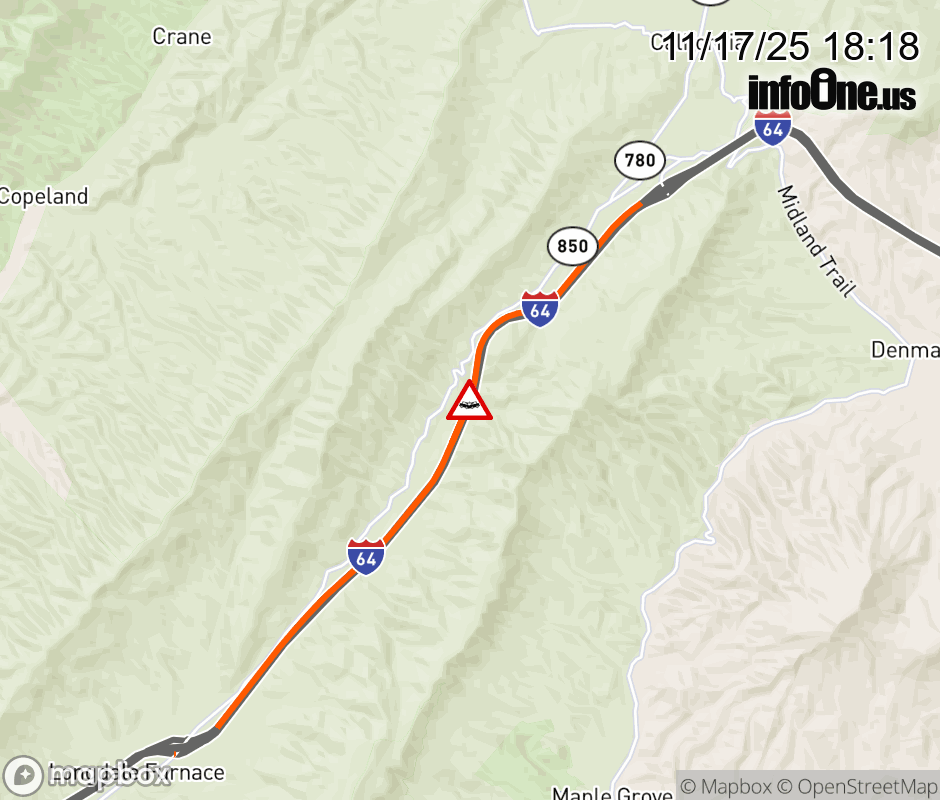 On I-64 at mile marker 40.4 in the County of Alleghany, motorists can expect delays due to a tractor trailer crash. All west lanes are closed. Updated: Mon 11/17/25 6:18 PM EST ![]() Updated: Mon 11/17/25 6:18 PM EST |