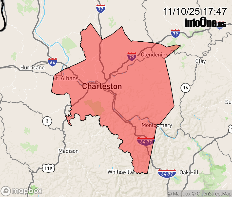 Canceled 11/10/25 9:00 PM Local Area Emergency issued November 10 at 5:46PM EST by NWS Charleston WV LAERLX The following message is transmitted at the request of the West Virginia EMERGENCY MANAGEMENT AGENCY Charleston West Virginia. Metro 911 has received multiple reports of accidents on Interstate 64 and Interstate 77 due to slick road conditions. Use caution and limit travel as much as possible. ![]() |