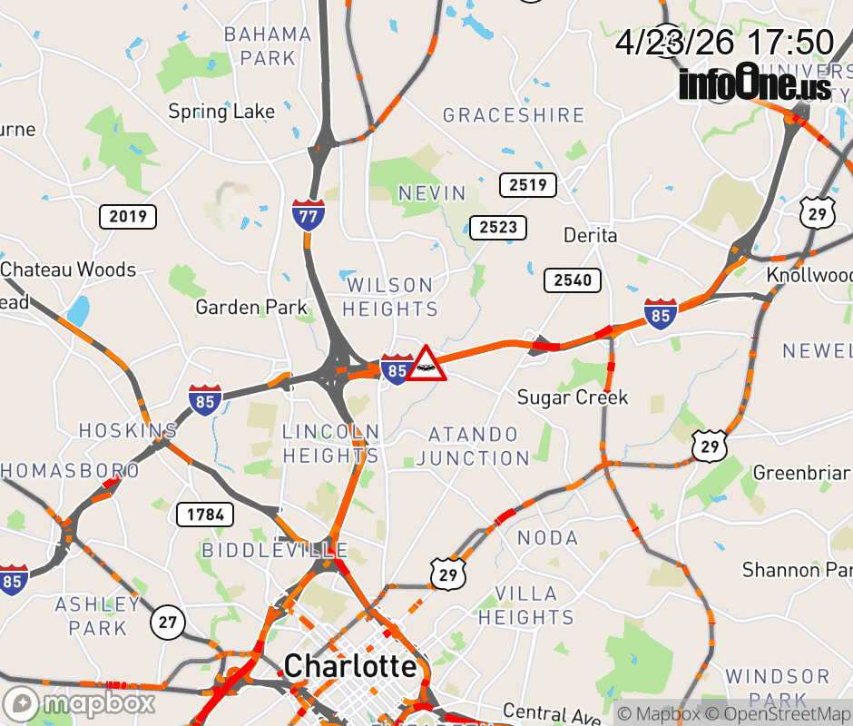 The right shoulder is closed before Exit 39 (Statesville Ave). Updated: Thu 4/23/26 5:50 PM EDT ![]() Updated: Thu 4/23/26 5:50 PM EDT |