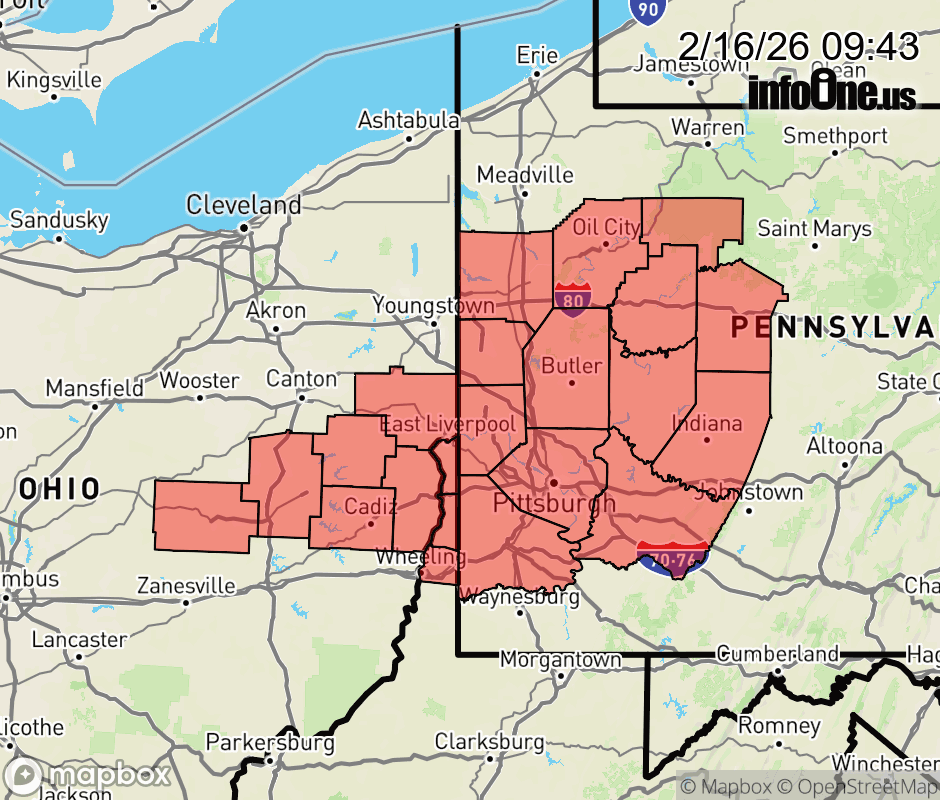 Canceled 2/16/26 11:45 AM Dense Fog Advisory issued February 16 at 9:42AM EST until February 16 at 12:00PM EST by NWS Pittsburgh PA * WHAT... Visibility one quarter mile or less in dense fog. * WHERE... Portions of east central Ohio, northwest, southwest, and western Pennsylvania, and northern and the northern panhandle of West Virginia. * WHEN... Until noon EST today. * IMPACTS... Low visibility could make driving conditions hazardous. ![]() |