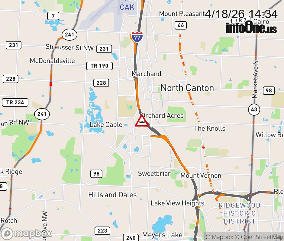 Expect lane closures on Ramp from I-77 S to Everhard Rd NW, due to a crash. ![]() |