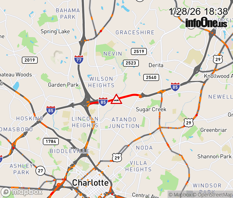 The right shoulder is closed past Exit 39 (Statesville Ave). Updated: Wed 1/28/26 6:38 PM EST ![]() Updated: Wed 1/28/26 6:38 PM EST |
