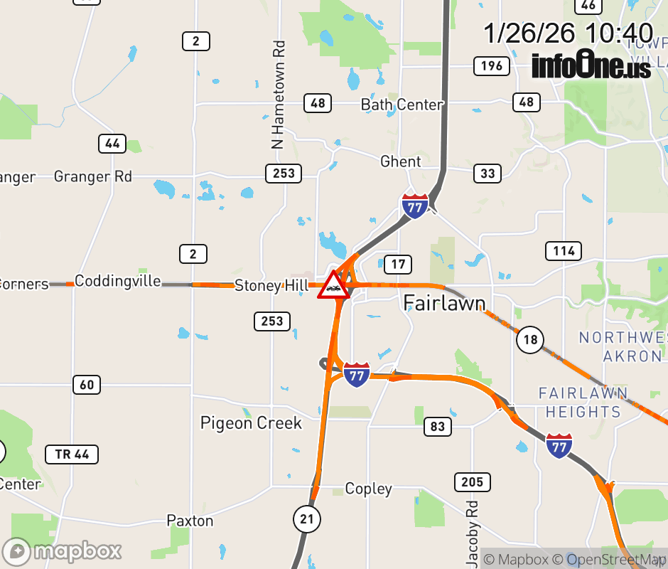 Ramp SR-18 West to I-77 South CLOSED because of a disabled vehicle. ![]() |
