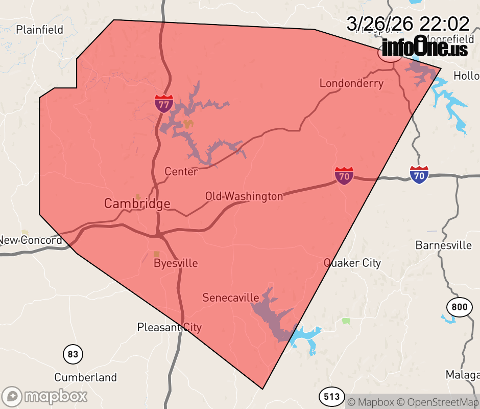 Canceled 3/26/26 10:14 PM Severe Thunderstorm Warning issued March 26 at 10:01PM EDT until March 26 at 10:30PM EDT by NWS Pittsburgh PA At 1001 PM EDT, a severe thunderstorm was located 8 miles north of Cambridge, moving southeast at 50 mph. HAZARD...60 mph wind gusts and half dollar size hail. SOURCE...Radar indicated. IMPACT...Hail damage to vehicles is expected. Expect wind damage to roofs, siding, and trees. Locations impacted include... Cambridge, Byesville, Antrim, Senecaville, Lore City, Old Washington, Salesville, Birmingham, Boden, Seneca Lake Park, Salt Fork State Park, Kimbolton and Piedmont Lake. ![]() |