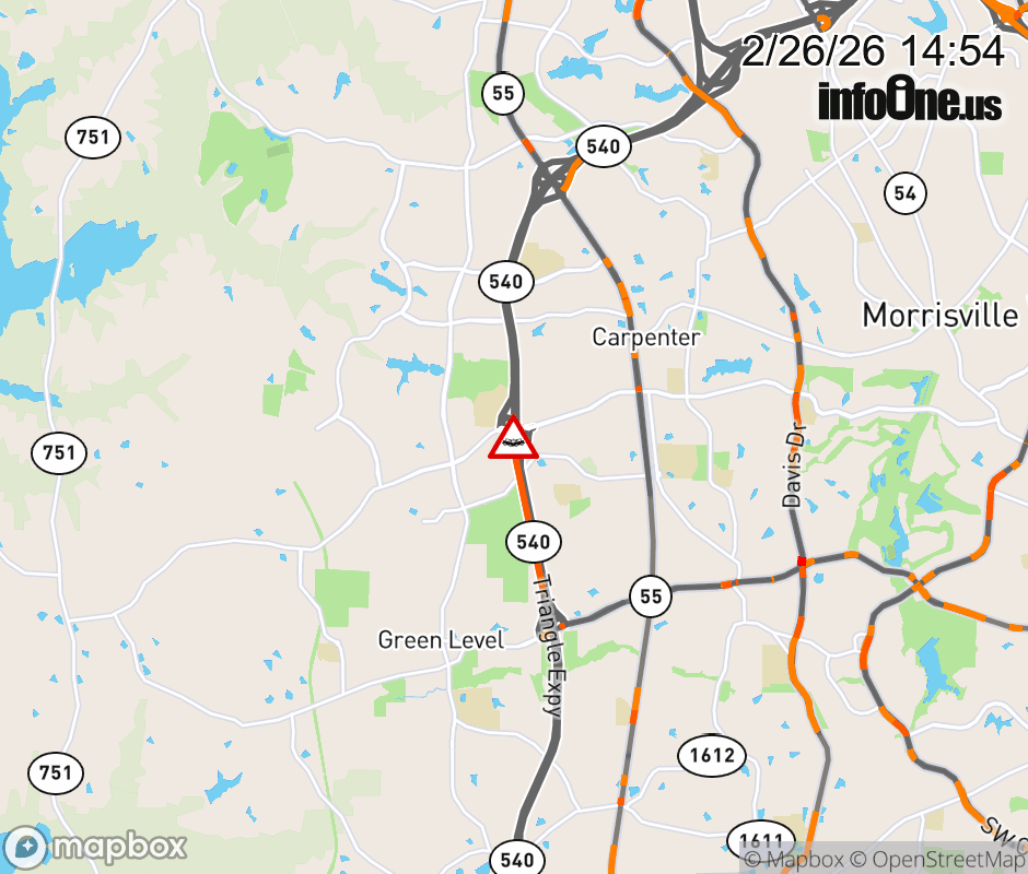 The left shoulder is closed at Exit 64 (Morrisville Pkwy). Updated: Thu 2/26/26 2:54 PM EST ![]() Updated: Thu 2/26/26 2:54 PM EST |