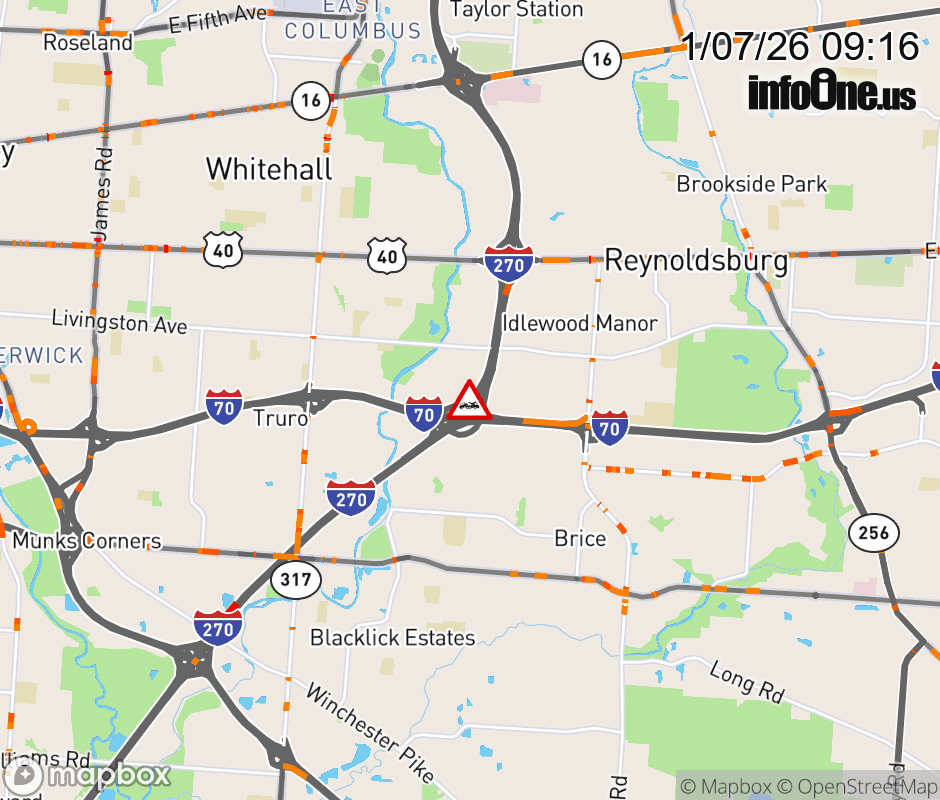 Expect lane closures on Ramp I-270 South to I-70 West (Eastside), due to a disabled vehicle. ![]() |