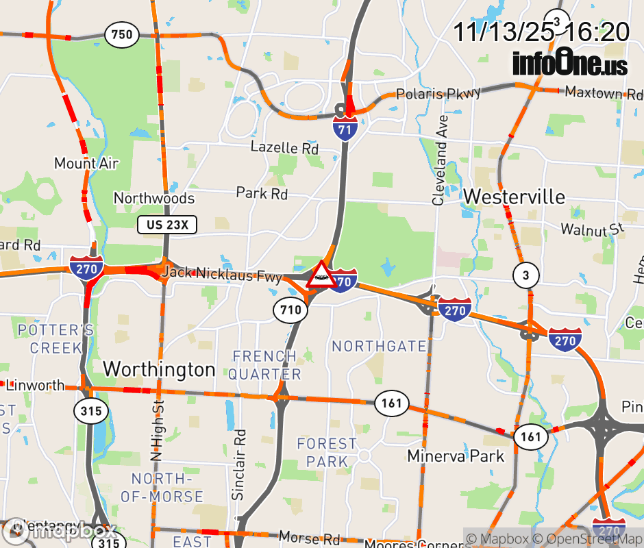The right shoulder is blocked on I-71 South at I-270 East (North Side), due to a crash. Updated: Thu 11/13/25 4:20 PM EST ![]() Updated: Thu 11/13/25 4:20 PM EST |