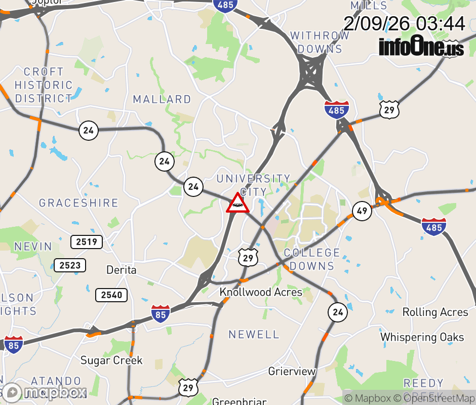The ramp shoulder is closed at Exit 45 (NC-24). ![]() |
