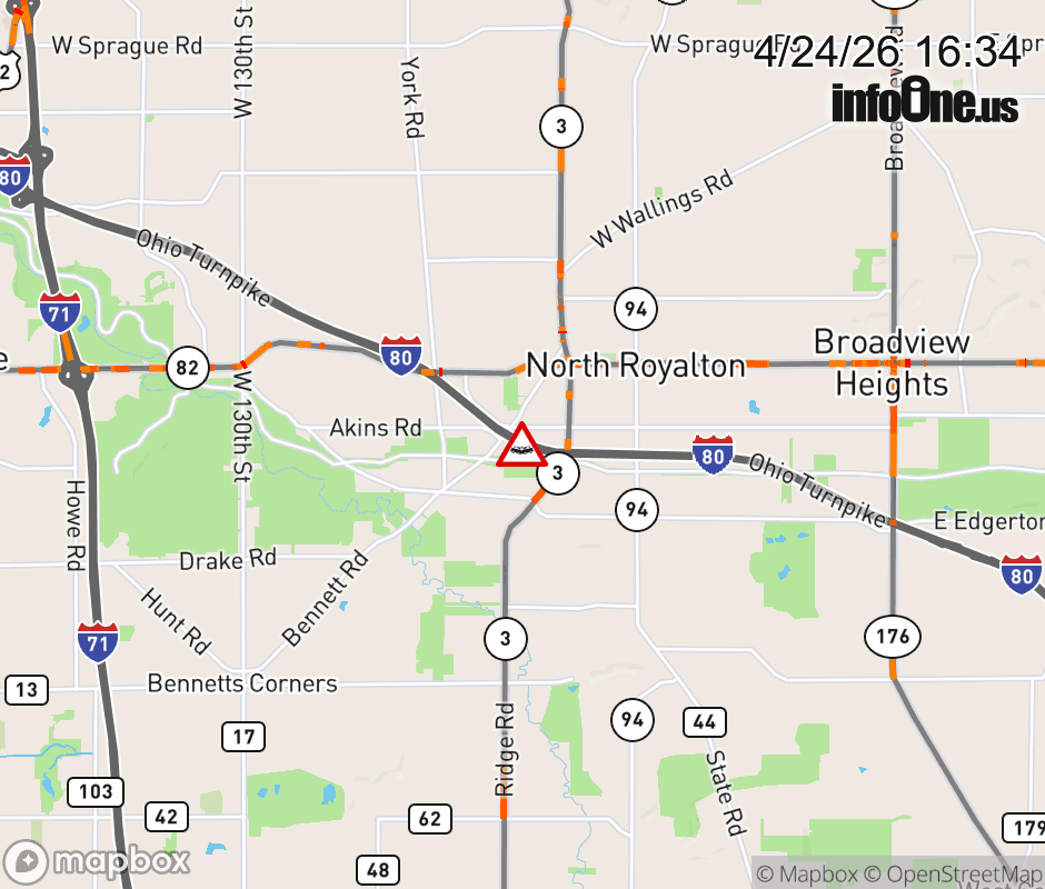 Expect lane closures on I-80 East (Ohio Turnpike) beyond I-71, due to a crash. ![]() |