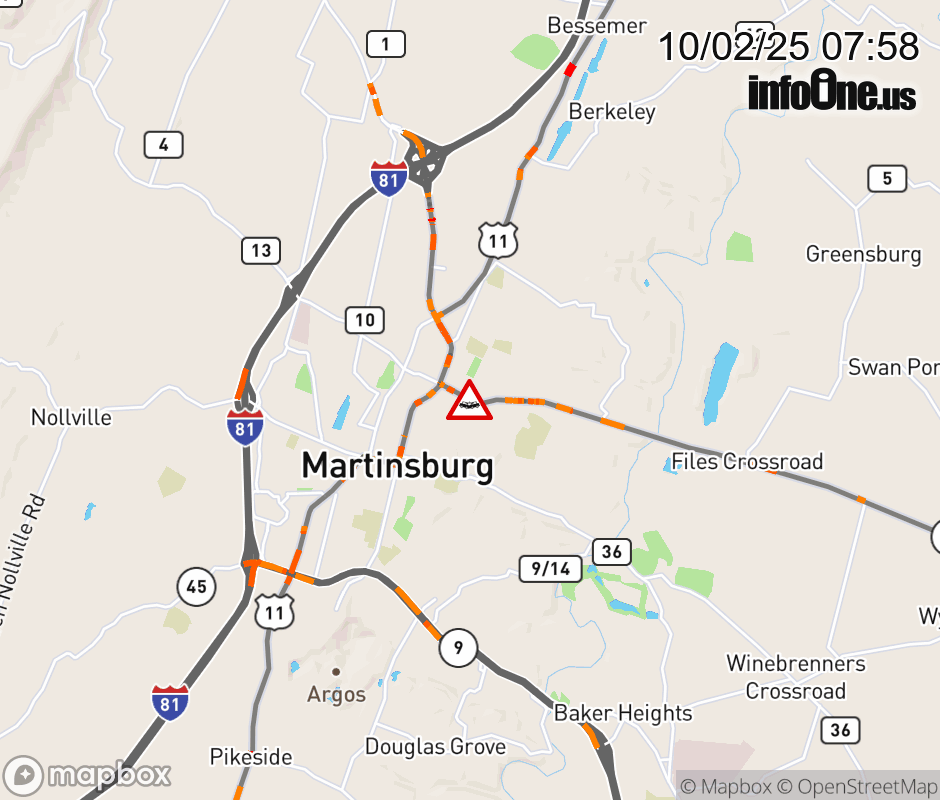 In Berkeley County there is a Vehicle Crash on WV-45 at Mile Marker 17.84. 600 E Molar Avenue. ![]() |