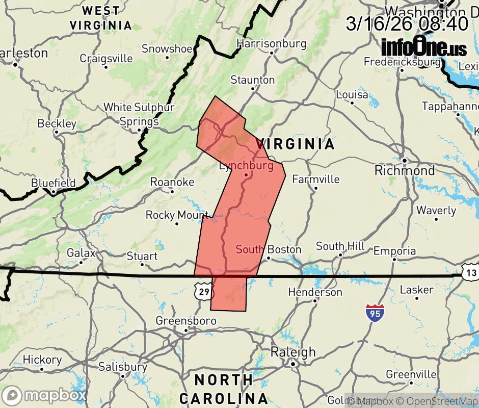 Canceled 3/16/26 9:21 AM Severe Thunderstorm Warning issued March 16 at 8:39AM EDT until March 16 at 9:45AM EDT by NWS Blacksburg VA SVRRNK The National Weather Service in BLACKSBURG has issued a * Severe Thunderstorm Warning for... Caswell County in north central North Carolina... Appomattox County in central Virginia... The City of Danville in south central Virginia... The City of Buena Vista in west central Virginia... The City of Lexington in west central Virginia... Rockbridge County in west central Virginia... Campbell County in central Virginia... Pittsylvania County in south central Virginia... Western Halifax County in south central Virginia... Eastern Bedford County in south central Virginia... Amherst County in central Virginia... The City of Lynchburg in central Virginia... * Until 945 AM EDT. * At 838 AM EDT, severe thunderstorms were located along a line extending from near Lexington to near Evington to near Wentworth, moving northeast at 70 mph. HAZARD...60 mph wind gusts. SOURCE...Radar indicated. IMPACT...Expect damage to roofs, siding, and trees. * Locations impacted include... Lynchburg... Danville... Lexington... Buena Vista... Altavista... Amherst... and Yanceyville. ![]() |