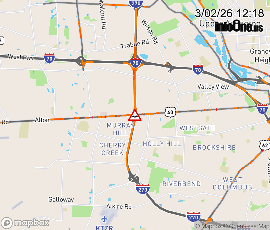 The 2 left lanes are blocked on I-270 North beyond US-40/W Broad St, due to a crash. ![]() |